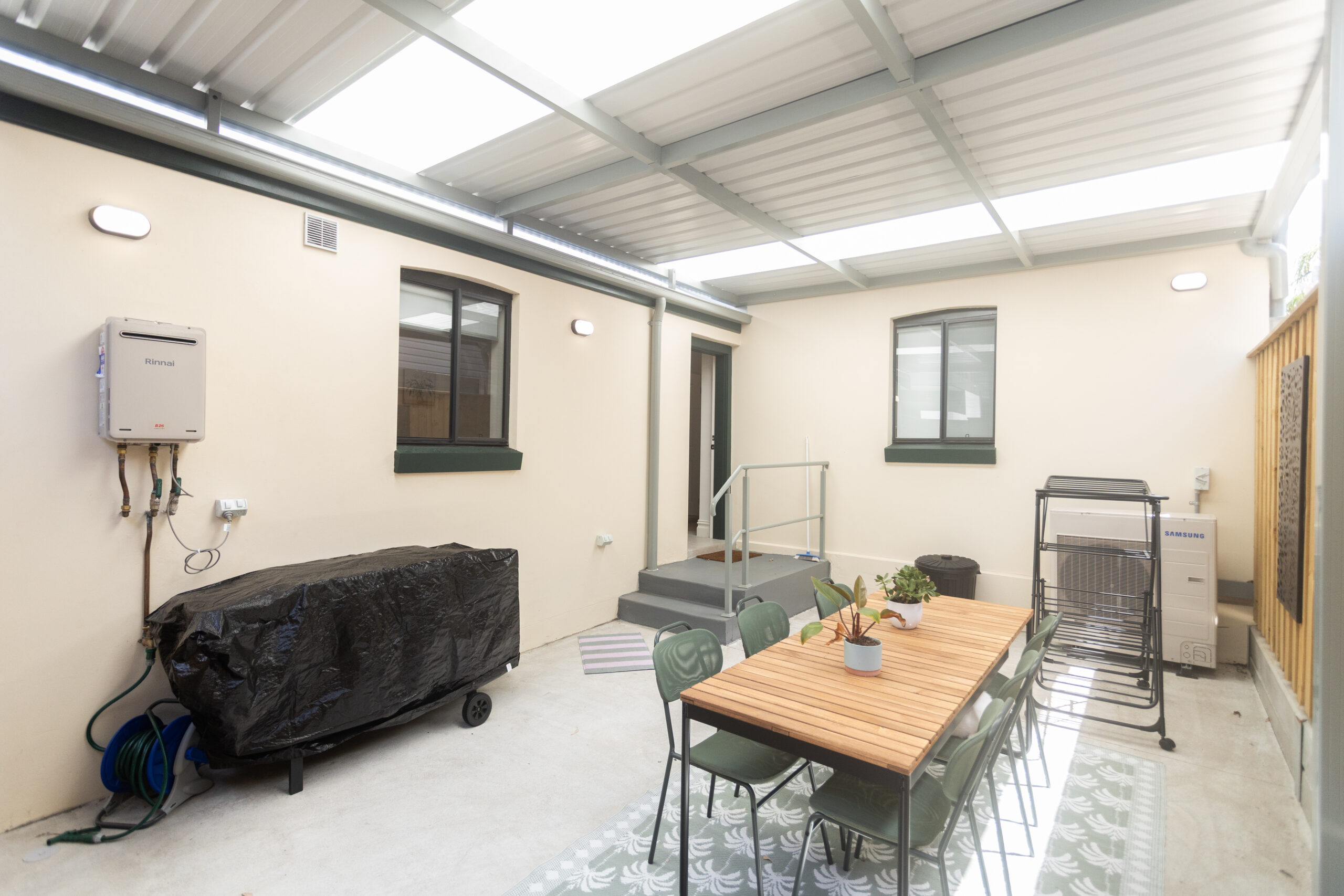 – Ducted air conditioning.